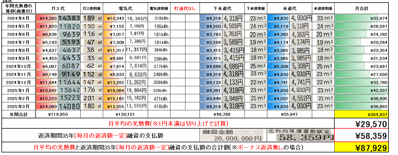 ご家族構成やお客様のライフスタイルにより、光熱費の推移が変わっています。また住宅ローン融資の自己資金比率も関係しています。