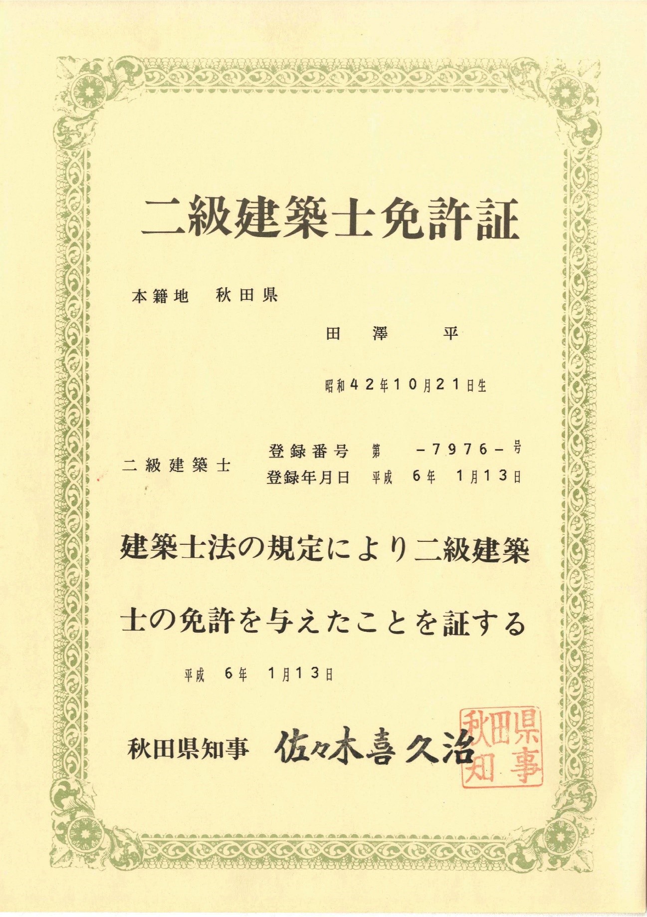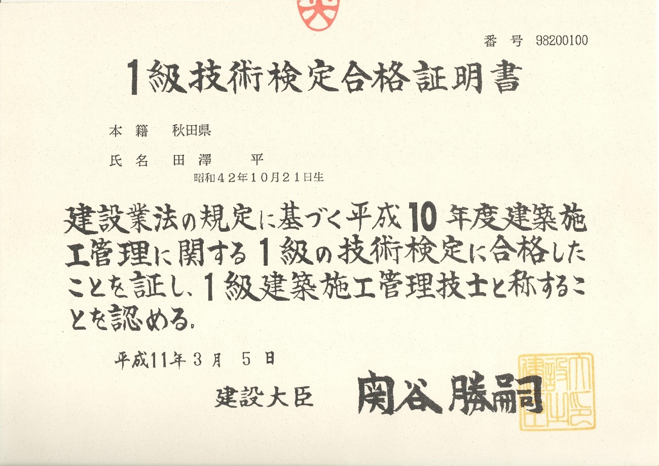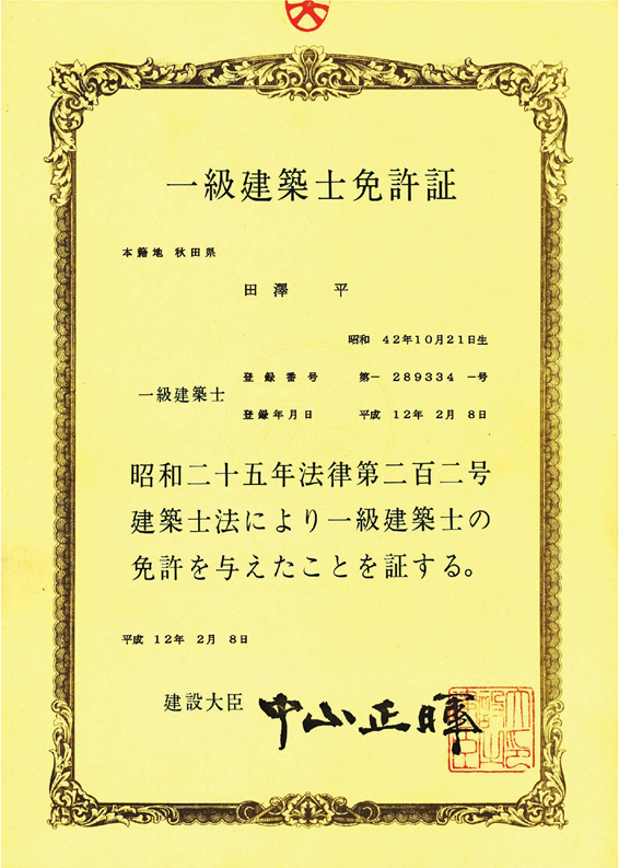 私、田澤 平(たざわ たいら)は一級建築士で
